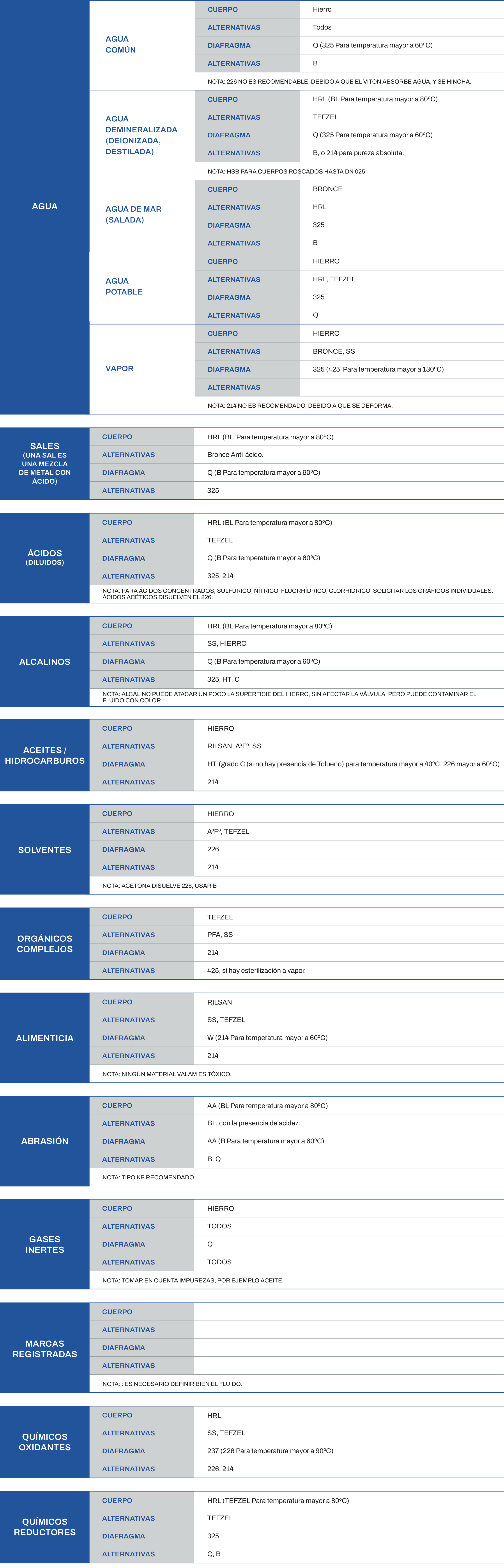 En sistemas que manejan varios fluidos o cuando se busca unificar materiales para diferentes aplicaciones, es fundamental evaluar si las recomendaciones de un material para un fluido pueden aplicarse a otro.