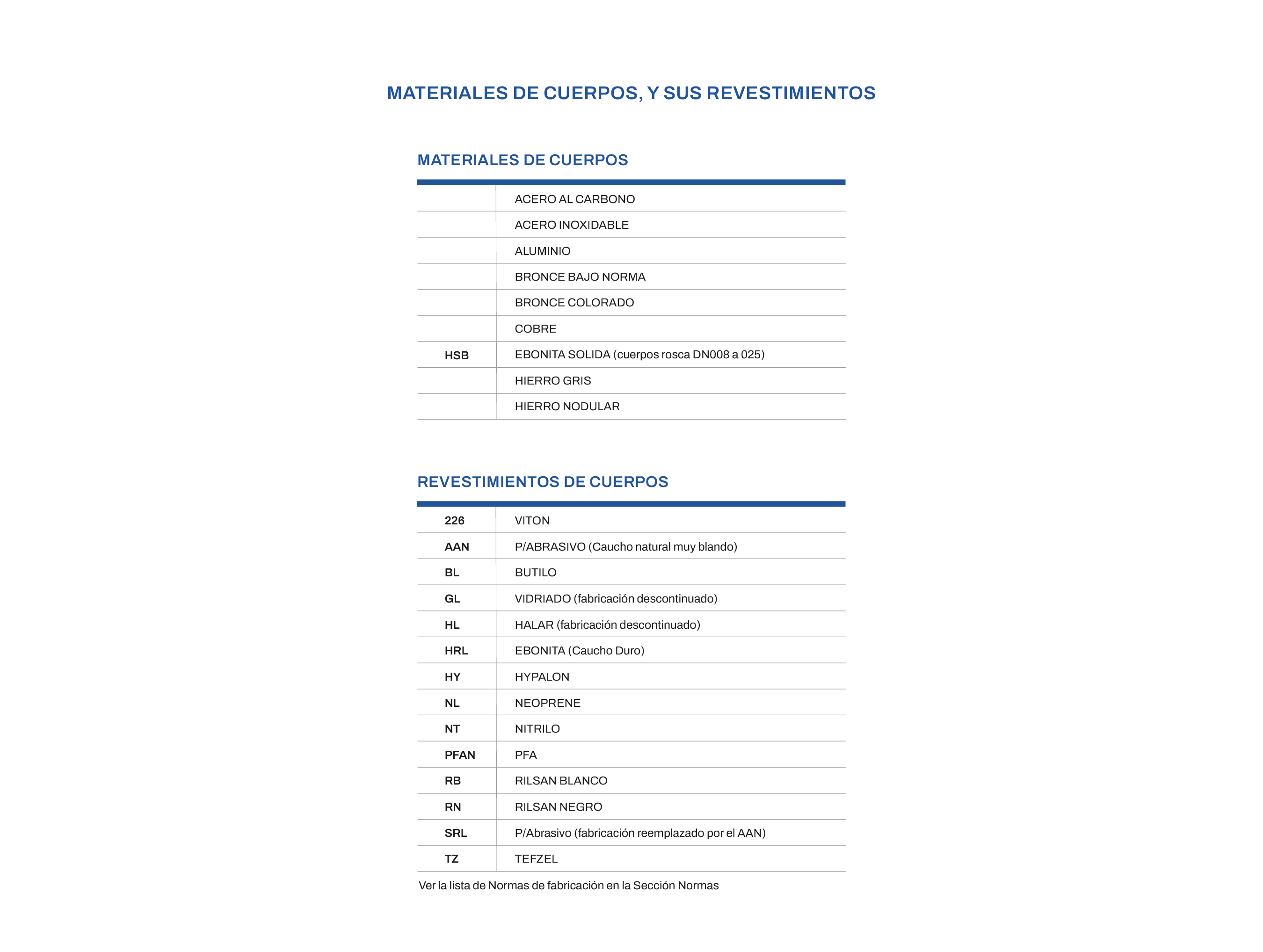 MATERIALES DE CUERPOS Y REVESTIMIENTOS