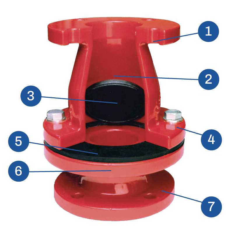 El cierre de la clapeta sin roce garantiza hermeticidad absoluta (con una contrapresión mínima de 0,35 bar), aún con partículas en suspensión.